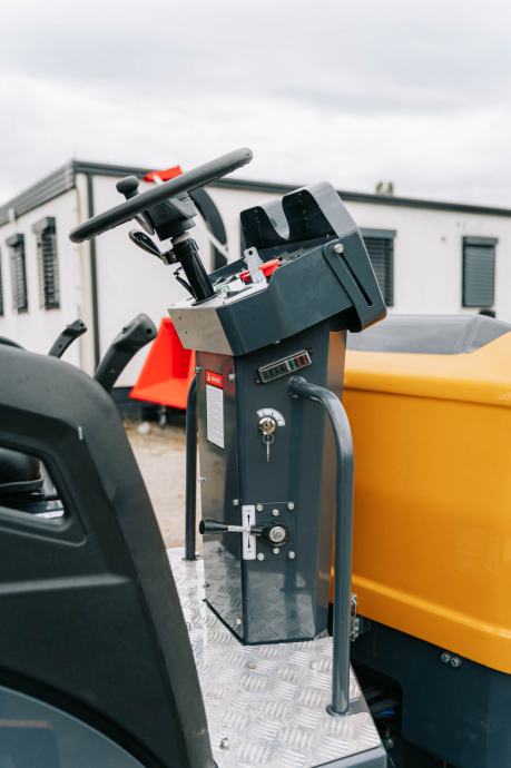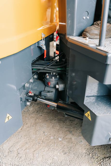 Opremljen je prisilnim prskanjem, hidrauličkim spremnikom od 48 l i spremnikom za vodu od 200 l, što omogućuje duge neprekidne radne cikluse. Robusna konstrukcija i sposobnost rada na nagibima do 30–40° dodatno povećavaju njegovu uporabnost na zahtjevnijem terenu.
