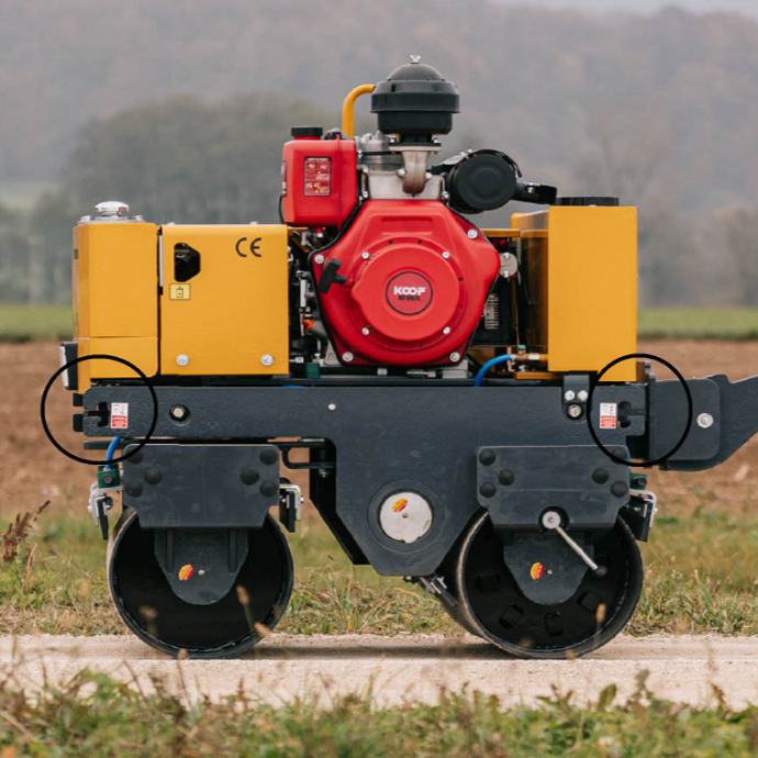 Pokreće ga pouzdani dizelski motor KOOP 186 (Euro 5), a elektromagnetska spojka omogućuje brzo uključivanje vibracija. Pri masi od 800 kg valjak razvija dovoljan pritisak za profesionalnu uporabu, a istovremeno ostaje okretan i prikladan i za uža područja. Opremljen je hidrauličkim spremnikom od 48 l, vodnim spremnikom od 200 l, LED radnim svjetlom i sigurnosnim isključivanjem. Radna širina iznosi 63,5 cm, maksimalni nagib 30°, a brzina do 4 km/h.