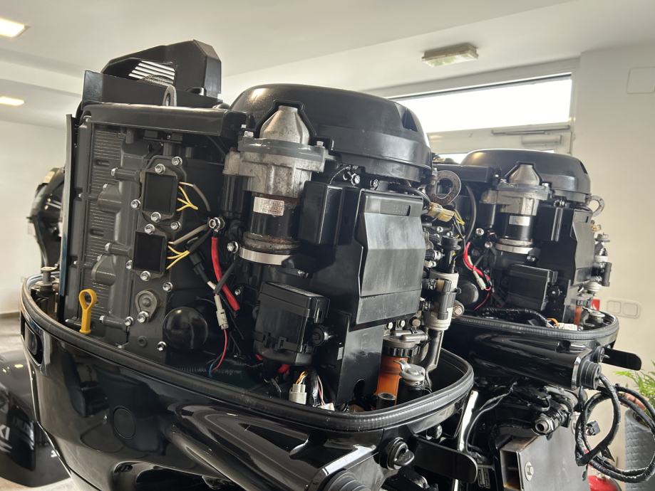 Kompletna dupla motorizacija u izvrsnom stanju sa samo 633 radna sata ,na oba motora montirani potpuno novi trimovi ( nikad još u moru ) motori dolaze sa svom opremom za korištenje , dupla elektronska komanda, start stop system , NMEA 2000 mreža sa digitalnim instrumentima , propeleri nisu uključeni u cijenu , mogućnost narudžbe propelera prema potrebnim dimenzijama. Na motorima je upravo obavljen redovan servis i dijagnostika , nemaju nikakve greške niti nedostatke.