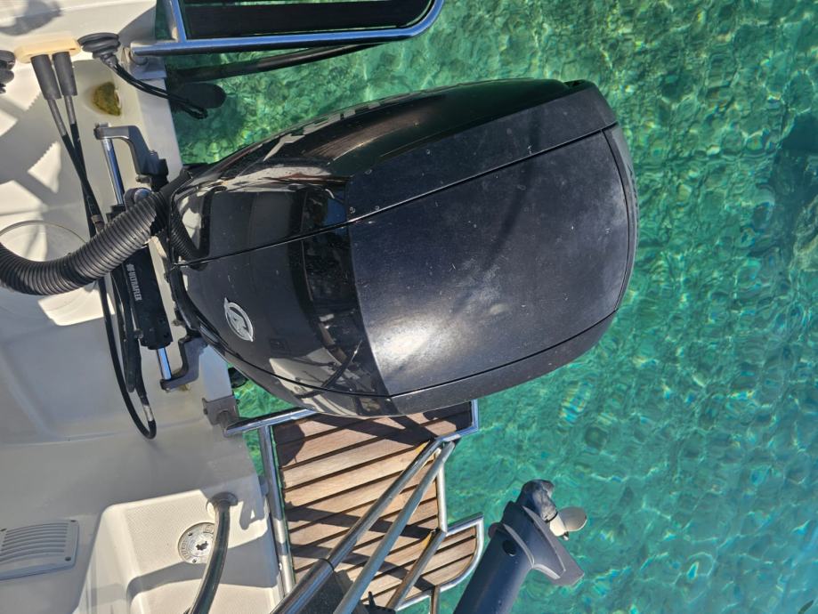 Korišten isključivo za osobne potrebe. Novi trim. Motor je na brodu pa je moguća proba. Uredan i odrzavan. Zbog neuspjelog pokusaja poliranja kape motor ovako izgleda.