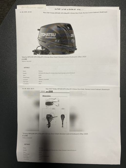 Prodajem 2 komada,vanbrodskih motoraTOHATSU MFS20E EPS