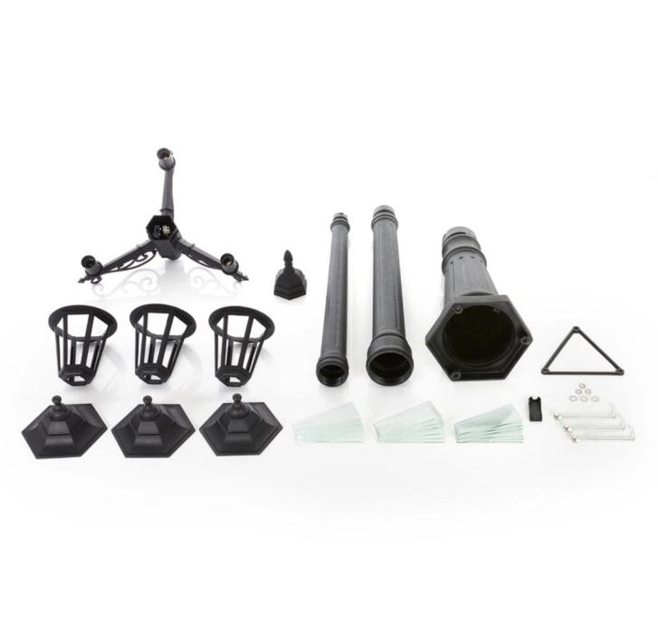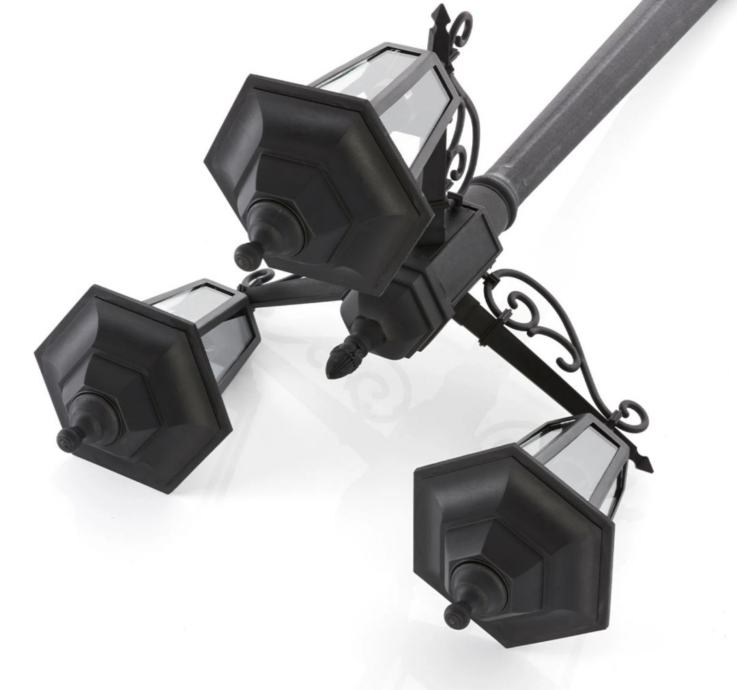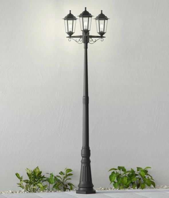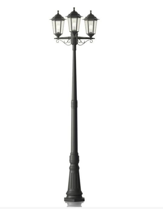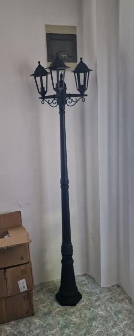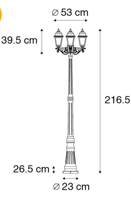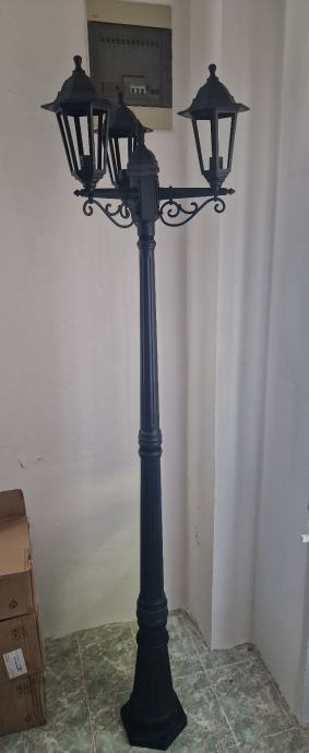 Boja crna, Materijal Plastika sa staklom .Ukupni promjer 53 cm - Visina 216,5 cm Težina 5,5 kg Pakiranje Visina 25 cm - Duljina 77,5 cm - Širina 29 cm Broj žarulja 3 ,nisu u paketu.