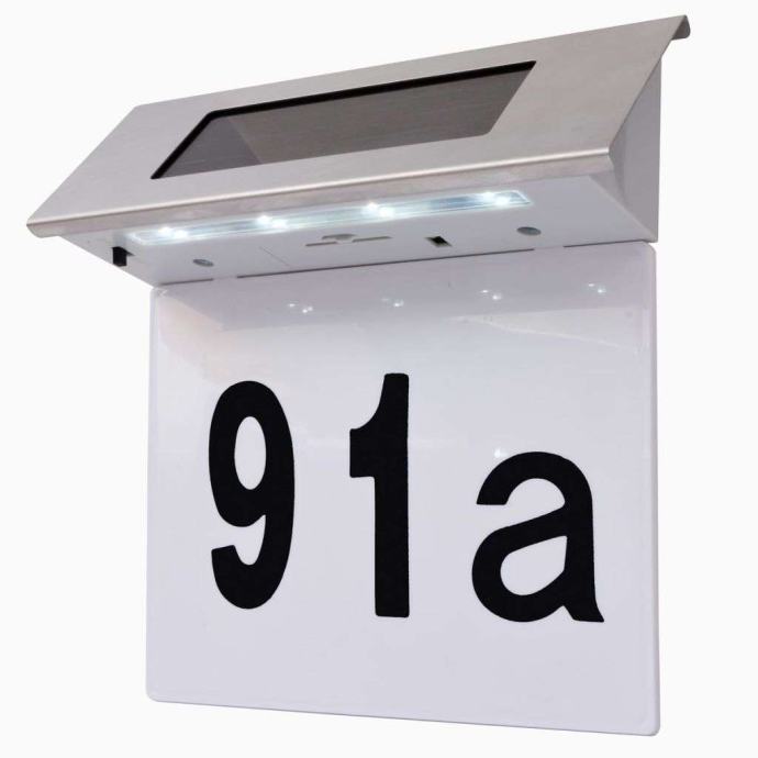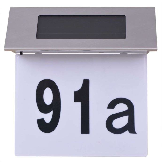 Ovo solarna svjetliljka je idealna za osvjetljavanje vaših vrata nakon mraka. Solarna ploča pretvara sunčevu svjetlost u električnu energiju tijekom dana, a svjetlo će se automatski uključiti u sumrak, čime će vaš poštanski broj postati vidljiviji. Tako što koristi solarnu energiju,ova lampa je energetski učinkovita i ekološki prihvatljiva. Sa vodonepropusnim kućištem od nehrđajućeg čelika, lampa je vremenski otporna i izdržljiva. Tri kompleta brojeva 0-9 i jedan set slova a-g su priložena, kako biste lako namjestili svoj kućni broj. Postavljanje je vrlo jednostavno sa priloženim dodatnim priborom i nije potrebno instalirati ožičenje.