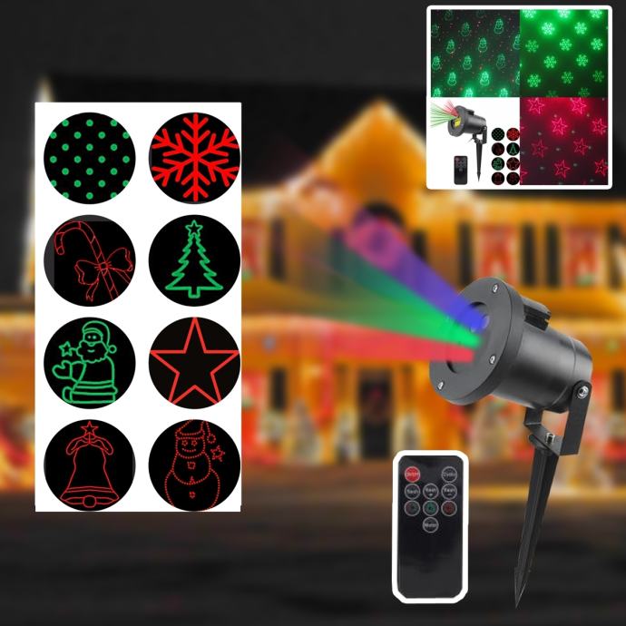 Laser projektor PUNO SLIKOVNIH EFEKATA + DALJINSKO UPRAVLJANJE VODOTPORAN za VANJSKU UPORABU IP65.