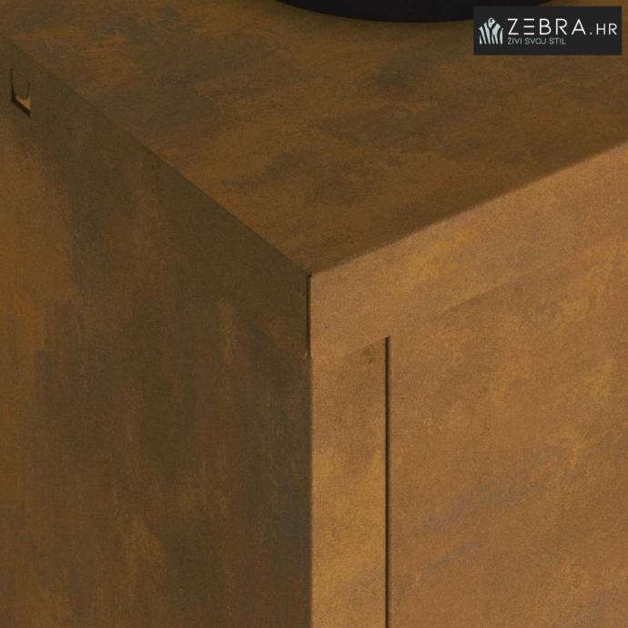 Ovaj proizvod još nije zahrđao i ima normalnu metalnu boju kad ga primite, ali hrđa će se s vremenom pojaviti. Možete ubrzati proces hrđanja prskanjem sapunicom i slanom vodom. Kako bi vaša odjeća ostala bez mrlja, izbjegavajte kontakt sa slojem hrđe koji se razvija.