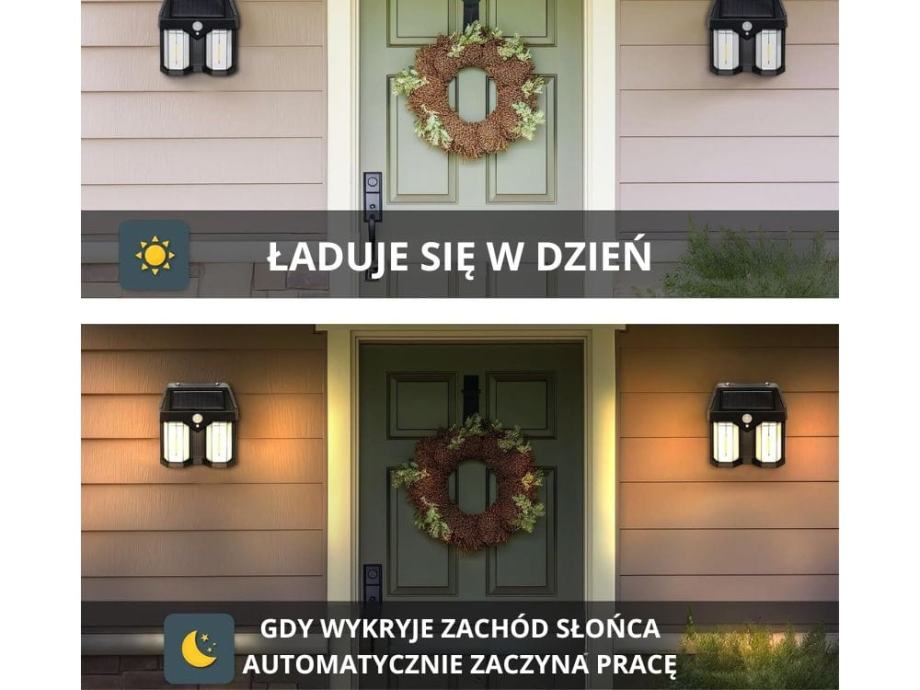 Praktična i moderna solarna svjetiljka izvrsno je rješenje za vanjsku rasvjetu. Opremljen je sumračnim i senzorom kretanja, automatski se uključuje prave uvjete, pružajući udobnost i uštedu energije. Zahvaljujući tri načina rada, njegov rad može se prilagoditi individualnim potrebama.
