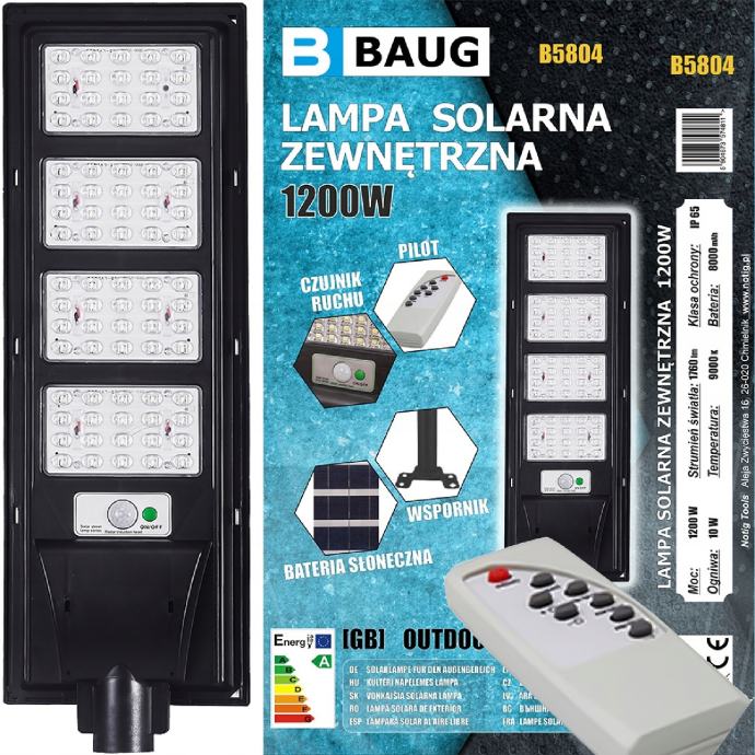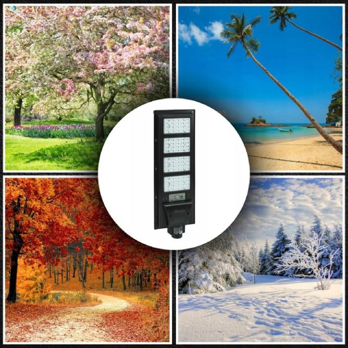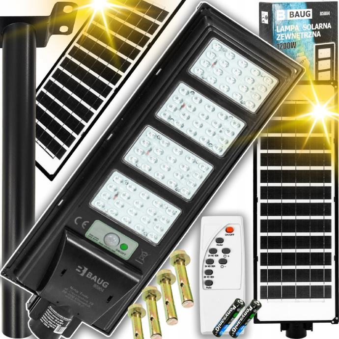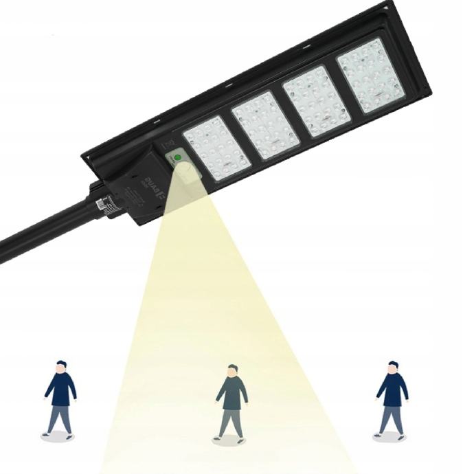 Vanjska solarna svjetiljka. Na vrhu svjetiljke nalazi se solarni panel koji prikuplja sunčevu energiju tijekom dana i pohranjuje se u ugrađenu bateriju. Nakon što padne mrak, svjetiljka koristi prethodno pohranjenu energiju za napajanje LED dioda i osvjetljenje. Senzori pokreta i sumraka ugrađeni u uređaj osiguravaju da se lampa pali samo kada je to potrebno. Kombinacija senzora omogućuje da svjetiljka radi samo nakon što padne mrak, pod uvjetom da se detektira kretanje.