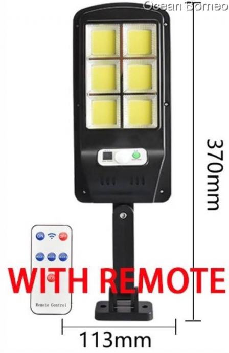 Učinkovita solarna svjetiljka sa 108 COB LED dioda neiscrpan je izvor besplatne energije za vaš dom. Montirajte ga bilo gdje izloženo sunčevoj energiji. Proizvod je vodootporan, tako da ne morate brinuti hoće li se lampa pokvariti u lošim vremenskim uvjetima. Set uključuje daljinski upravljač zahvaljujući kojem možete prilagoditi način rada svjetiljke ili ga jednostavno isključiti.