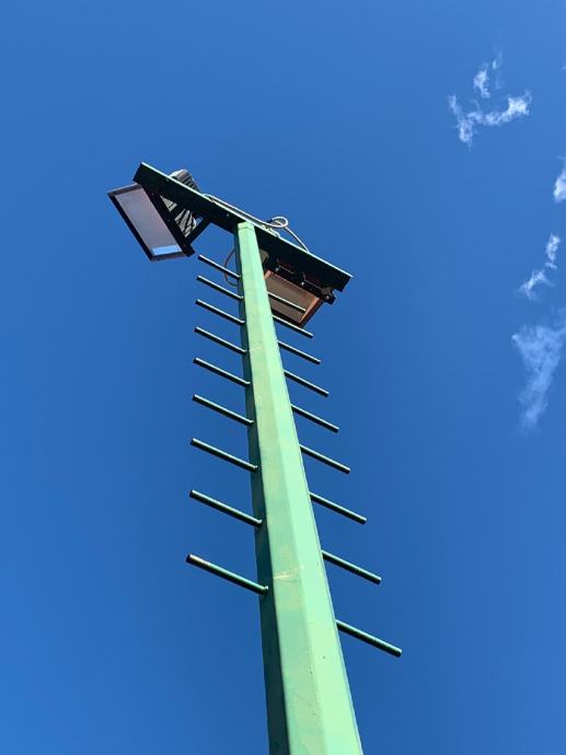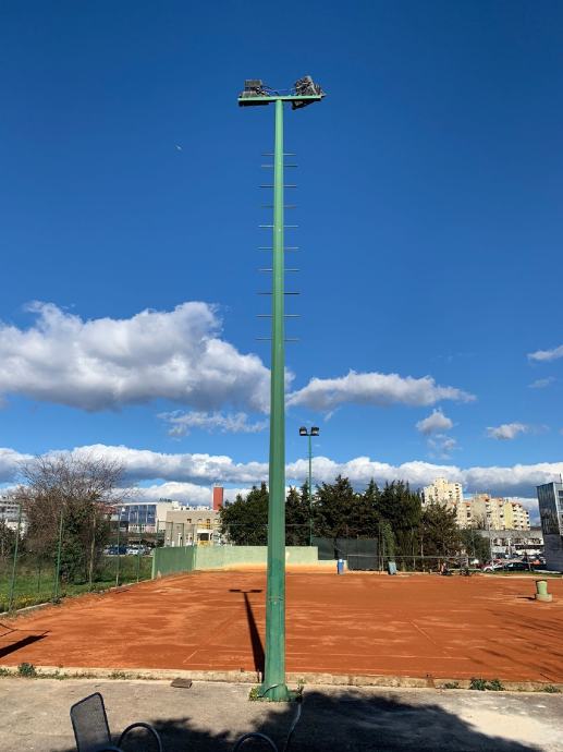 Stupovi za rasvjetu 4 kom, koristeni za teniske terene, visina 9.50 m, pocincani i ofarbani, u odlicnom stanju. Cijena za jedan stup 3.000 kn.