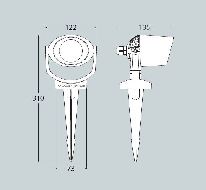 Montaža na strop, zid ili klinom direktno u zemlju, mogućnost usmjeravanja svjetla u svim smjerovima.