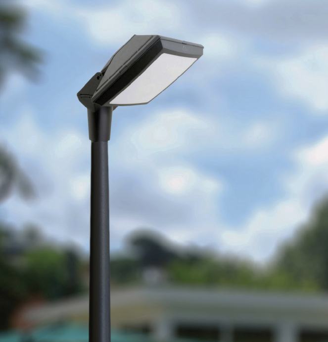 Vanjski rasvjetni stup, modernog minimalističkog dizajna izrađen od novih kompozitnih materijala velike čvrstoće i otpornosti na UV zračenje, koroziju i vremenske uvijete.