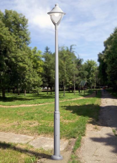 Vanjski rasvjetni stup za javni ili privatni prostor, modernog dizajna, čelična konstrukcija zaštićena posebnim slojem kompozitnim materijalom koji daje dodatnu otpornost na izloženost vanjskim vremenskim utjecajima kao i veliku fizičku čvrstoću, otpornost na UV zrake, temperature od -60°do 90°C, antikorozivna konstrukcija.