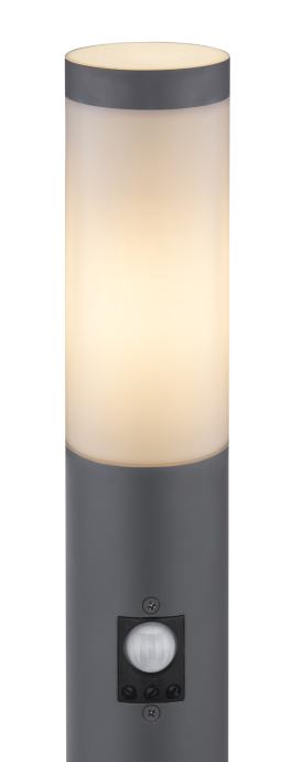 Vanjska svjetiljka od 80 cm izrađena je od nehrđajućeg čelika antracit boje i opremljena opal plastikom iznad. Ovo pokriva grlo E27, koje možete opremiti odgovarajućom žaruljom po vlastitom izboru, što vam omogućuje individualno određivanje boje i svjetline. Uz pomoć postolja vanjska svjetiljka se lako može pričvrstiti na ravne površine. Također ima integrirani detektor pokreta s dometom od osam metara.