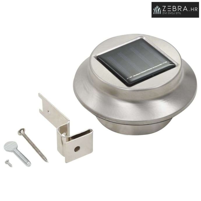Ove LED solarne svjetiljke opremljene su baterijom AA koja se puni sunčevom svjetlošću. Vanjske solarne svjetiljke mogu se ugraditi ispod krova ili pričvrstiti na ogradu ili zid.