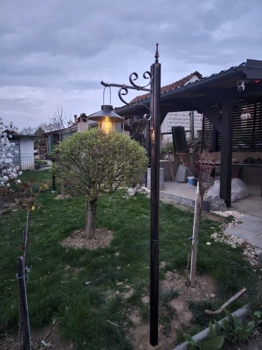 Vrtna samostojeća svjetiljka s solarnom lampom rustikalnog izgleda s kovanim uzorcima,visine 2m,do lampe cca 1.8m