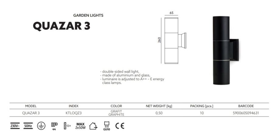 1️⃣ Vrtna zidna lampa "Quazar 3" renomiranog brenda "Kobi light" - 139,00kn