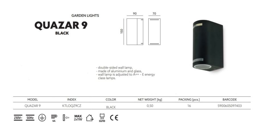1️⃣ Vrtna zidna lampa "Quazar 9" renomiranog brenda "Kobi light" - 149,00kn