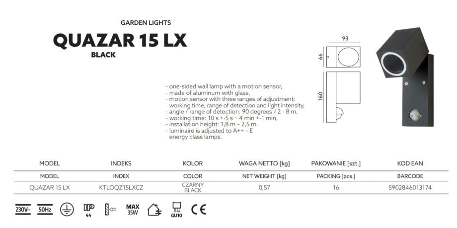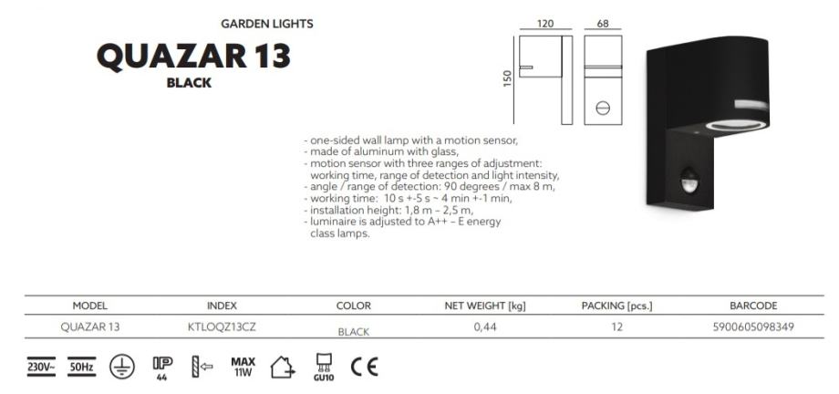 3️⃣ Vrtna zidna lampa sa senzorom pokreta "Quazar 13" renomiranog brenda "Kobi light" - 239,00kn