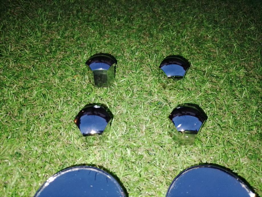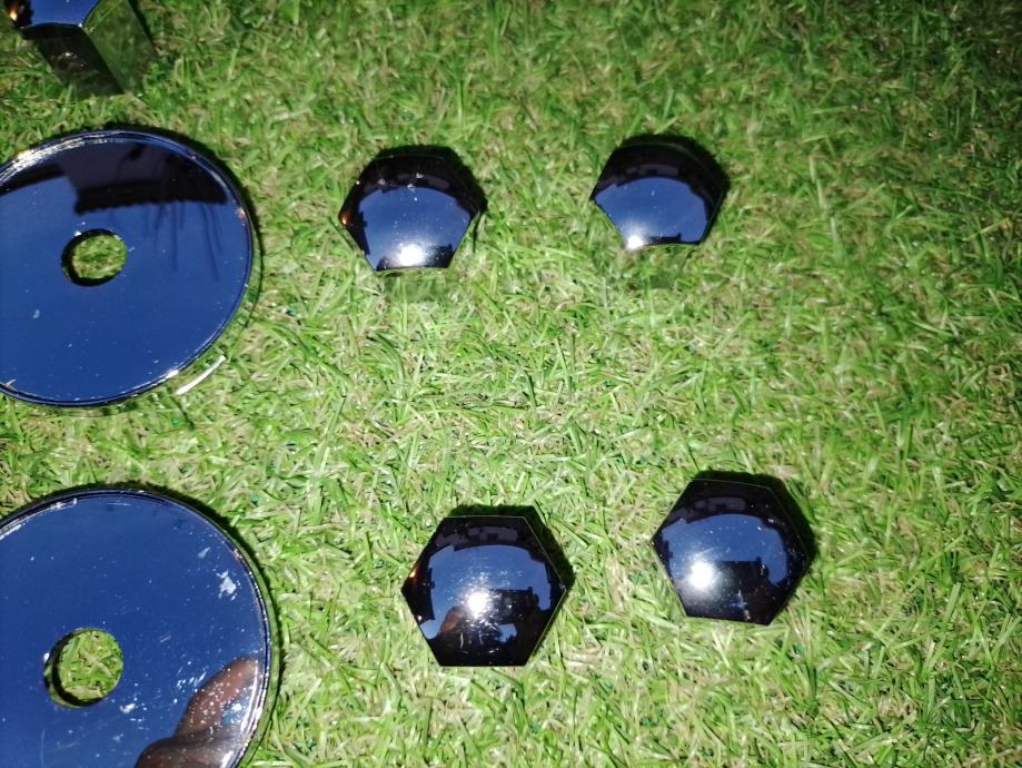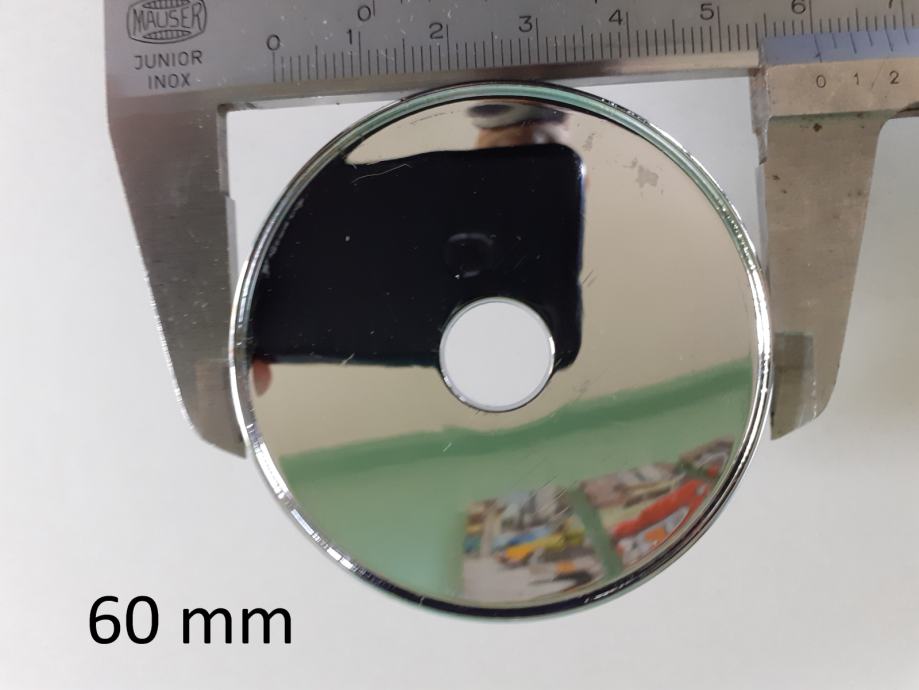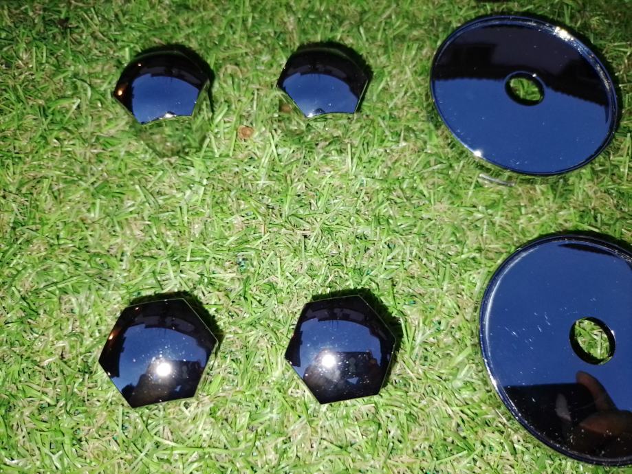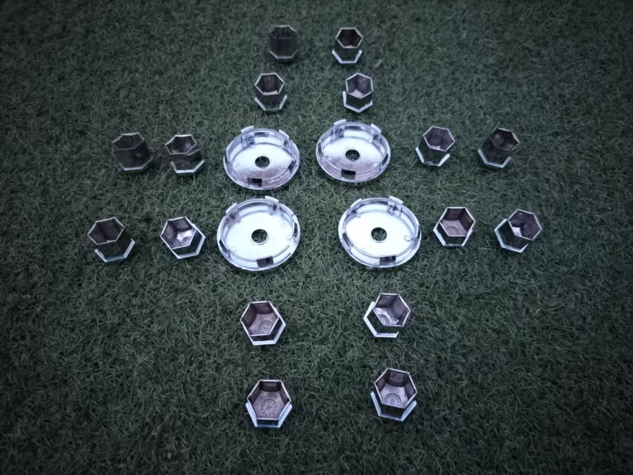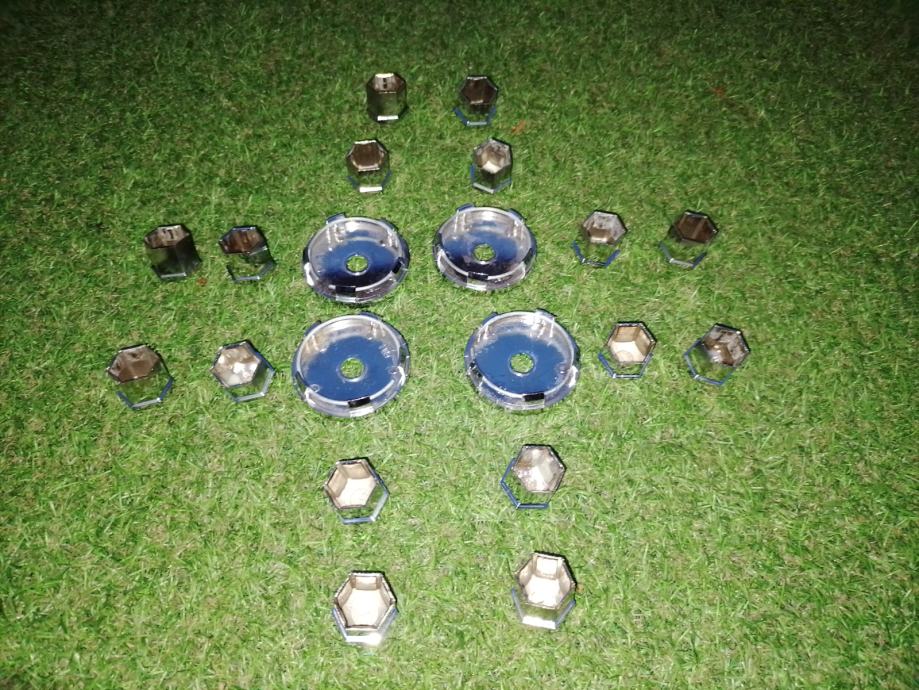 Prodajem 4 plastična čepa i 16 plastičnih kapica za vijke, u boji kroma. Svi čepovi i kapice su čitavi, sa neupadljivim površinskim oštećenjima. Fotografije uz oglas ih prikazuju, a na zadnjim trima fotografijama vide se mjere. Promjer rupe na felgi bi trebao biti 56 mm, a vanjski promjer maske čepa je 60 mm. Nisam predvidio cjenkanje i molim one koji u to ne vjeruju da se ne javljaju. Voljan sam ih besplatno dostaviti od Rijeke do Lovrana ili, na trošak kupca poslati bilo gdje. Ako kupac sa teritorija Hrvatske bude spreman unaprijed uplatiti novac na račun, a ne odluči se za uplatu preko PayProtecta, dostava u kiosk Tiska koštati će 2.80 €, dostava u poštanski ured također 2.80 €, a dostava do kućnog praga ili mjesta po dogovoru 4.50 €. Može platiti pri preuzimanju od dostavljača. U tom slučaju, dostava u poštanski ured koštati će 4 €, a do kućnog praga ili mjesta po dogovoru 5 €.