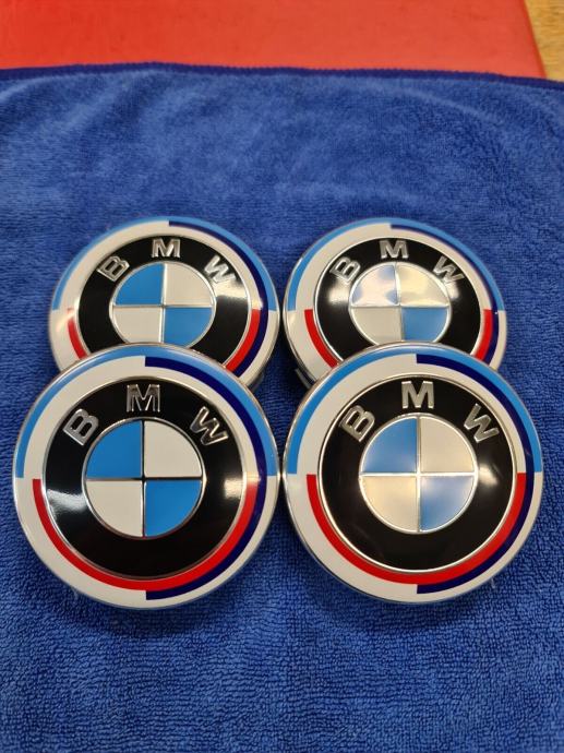 **NOVO** 50 godina BMW poklopci za felge 68mm -- KOMPLET 4 kom --