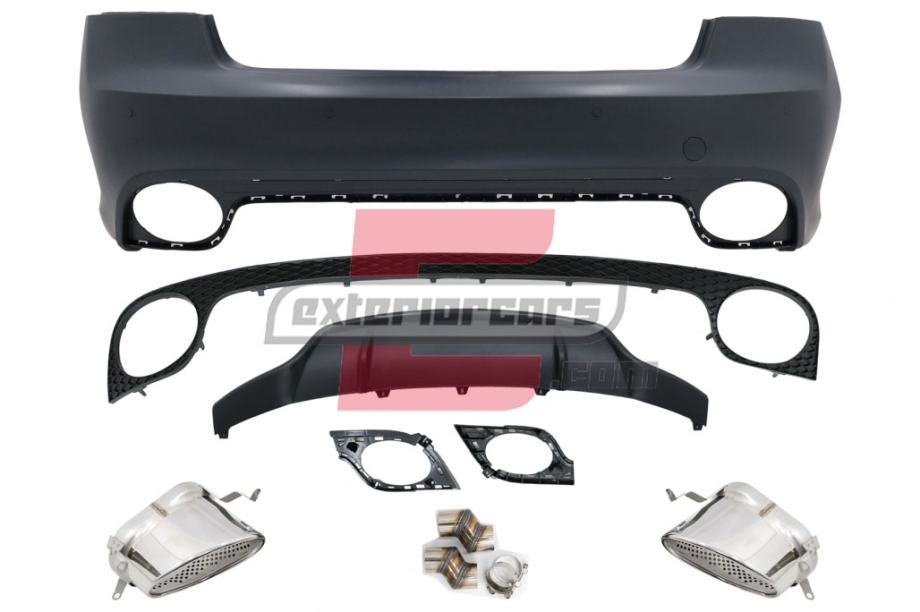 Zadnji branik RS5 dizajn opremljen je s difuzorom zraka s dvostrukim izlazima za ispušni sustav, nastavcima auspuha i priborom za ugradnju ispušnog sustava