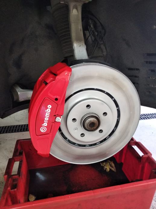 NA SLIKAMA MOŽETE VIDJETI DA SMO KOMPLETNO REPARIRALI, PIJESKARILI I PLASTIFICIRALI PREDNJE I STRAŽNJE ČELJUSTI U KOMBINACIJI CRVENE BOJE I BREMBO NATPISA !