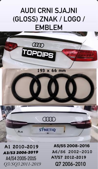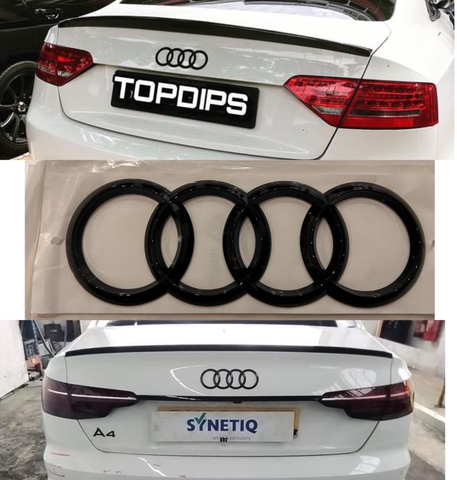 AUDI CRNI SJAJNI GLOSS ZNAK ZA ZADNJU HAUBU ZA GEPEK A6 A4 A3 A5 A7 Q3
