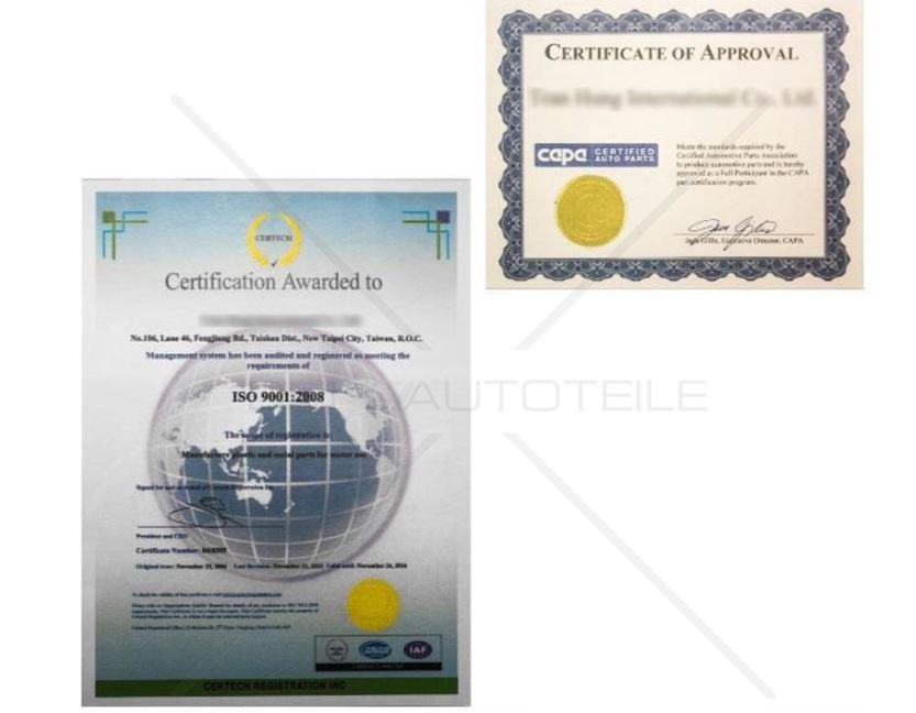 Dolazi s TUV certifikatom te je moguć upis u knjižicu vozila uz atest
