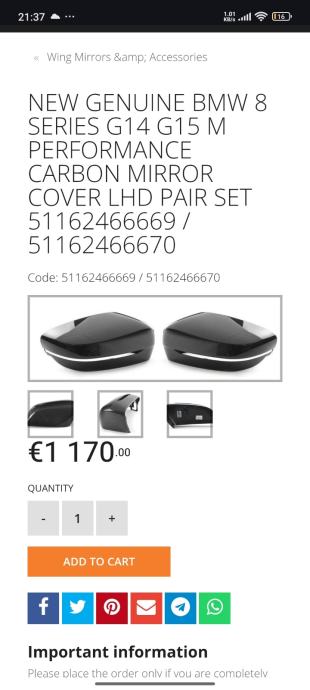 Originalni M Performance karbon poklopci retrovizora za sve karoserijske izvedbe 8. serije