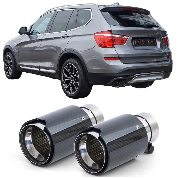 Dajte svom vozilu sportski štih s ovim univerzalnim ispušnim cijevima od nehrđajućeg čelika s karbonskim premazom. Okrugle ispušne cijevi impresioniraju svojom visokokvalitetnom izradom, plemenitom crnom sjajnom karbonskom površinom i pružaju moderan sportski izgled.