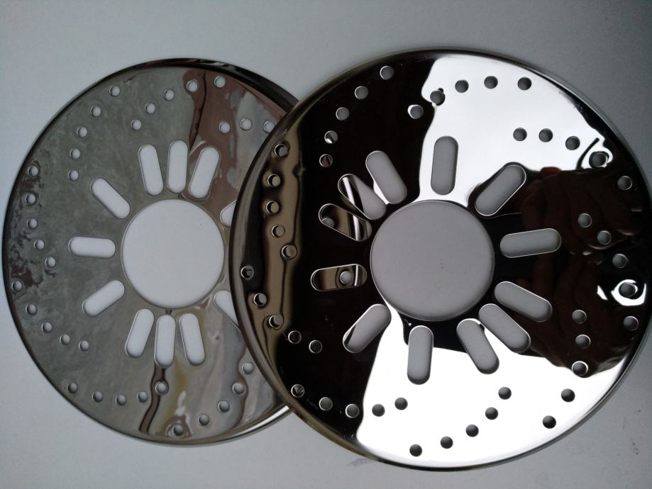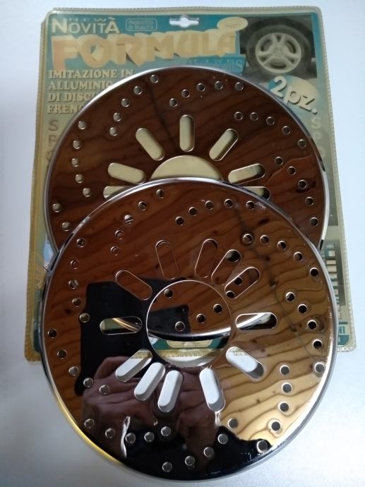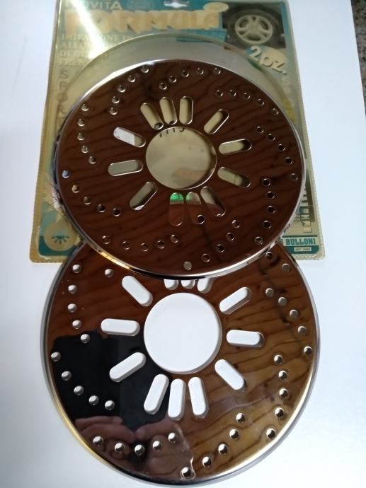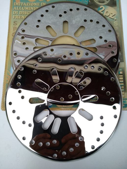 Prodajem imitaciju niklovanih diskovi. Odgovaraju za sva vozila koja imaju otraga bubnjeve. Cijena je za par . Promjer diskova je 26 cm.