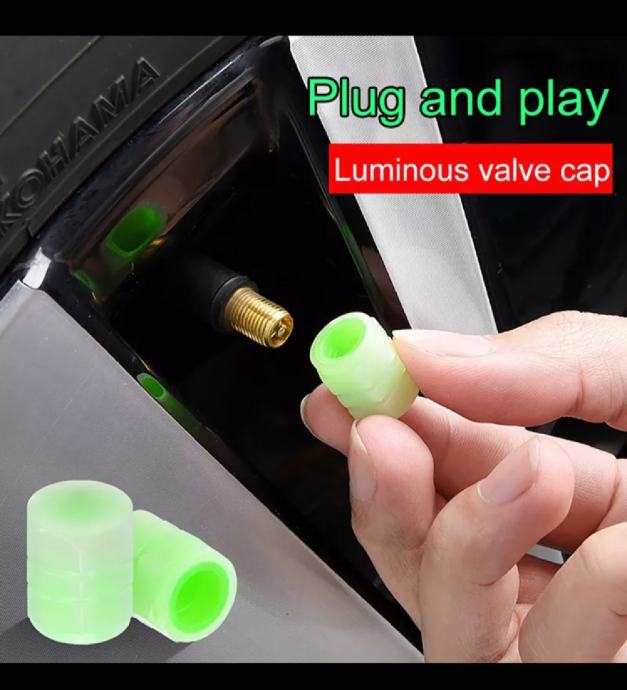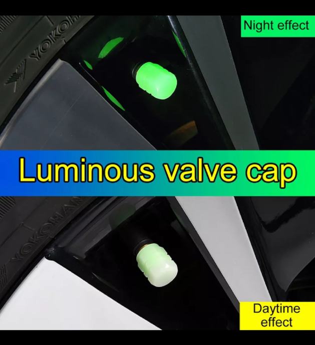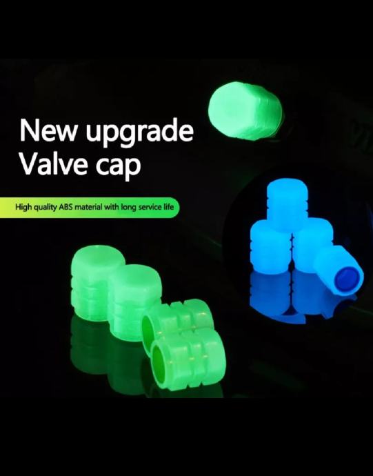 set 4 kom. specijalnih ABS, ukrasno-zaštitnih kapica ventila za gume sa luminiscentnim efektom( žuti,zeleni,plavi,crveni,