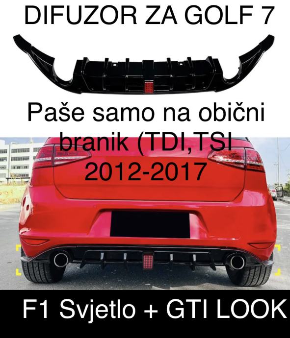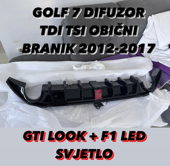 GOLF 7 GTI LOOK DIFUZOR + F1 LED SVJETLO KOČNICA za tdi obični branik