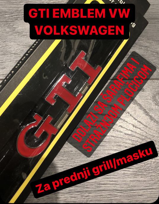 GTI ZNAK EMBLEM LOGO ZA PREDNJU MASKU GRILL PREDNJI BRANIK GTI VW GOLF