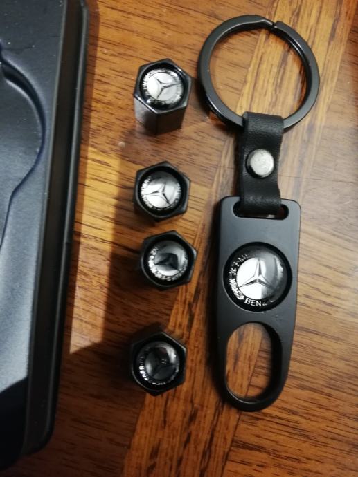 Prodajem nove zapakirane metalne kapice ventila s logom " Mercedes" - a i privjeskom za ključeve.