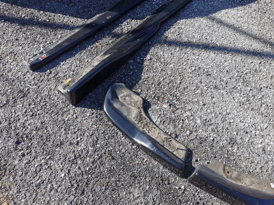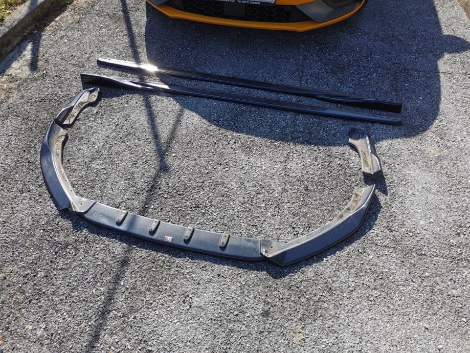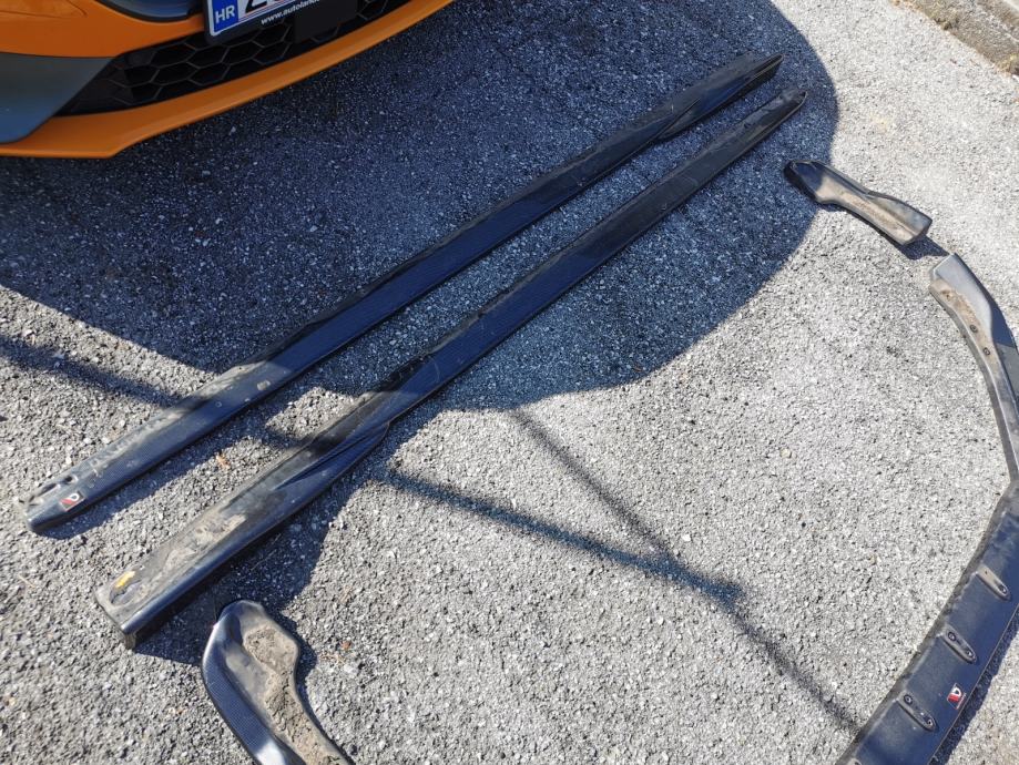 Set prednjeg lipa, bočnih pragova i stražnjih nastavaka branika skinuta sa Focusa ST. Paše na ST i ST line modele. Uzorak spojlera je tzv. Carbon. Prednji lip je oštećen. Sve vidljivo na slikama.