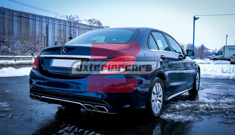 Zadnji branik C63 AMG dizajn je izrađen u visokokvalitetnom polipropilenu, opremljen s C63 difuzorom zraka napravljenim od ABS plastike te opremljen dvostrukim ispušnim otvorima