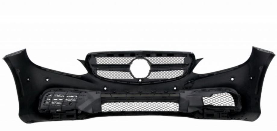 Prednji branik dolazi s PDC rupama, PDC nosačima, piano crnom (sjajnom) središnjom maskom (AMG dizajn), središnjom donjom mrežom, bočnim mrežicama te crnom lajsnom od brušenog aluminija
