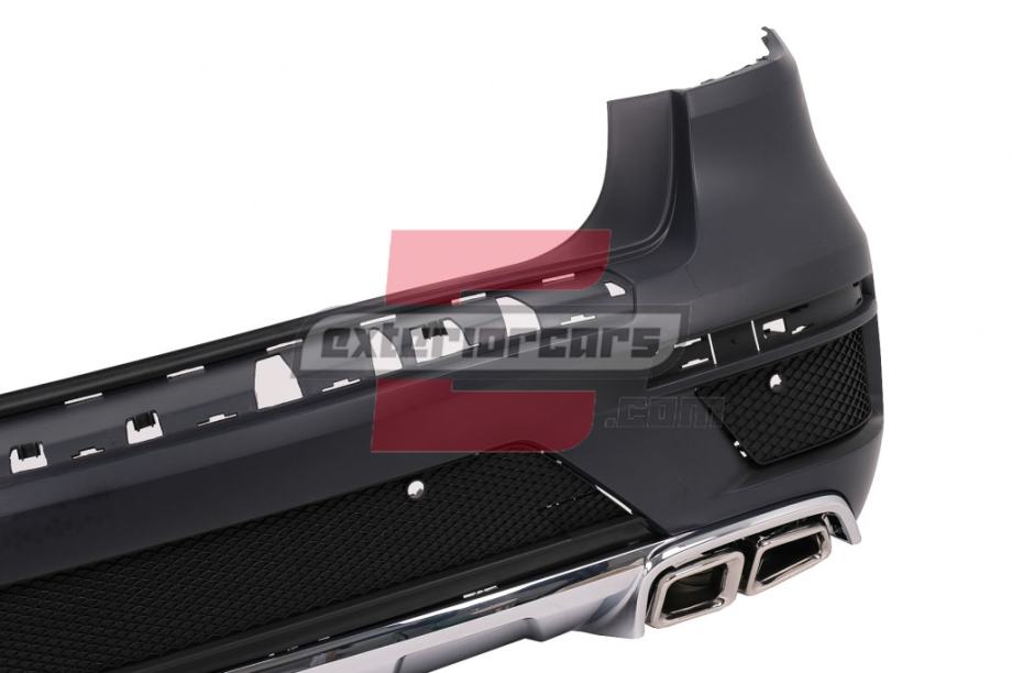 Zadnji branik AMG dizajn je opremljen sa difuzorom zraka, centralnom-donjom mrežicom, bočnim mrežicama, podrškom za parking senzore (PDC) i crvenim katadiopterima (mačje oči)