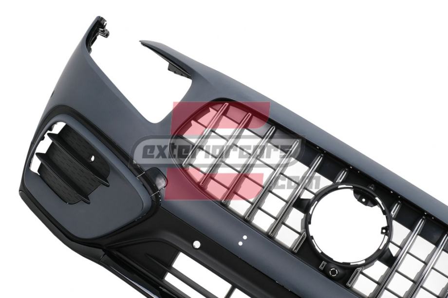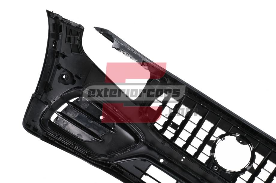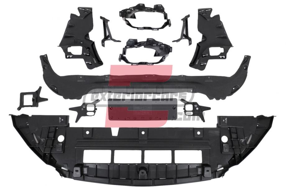 Opremljen sa prednjom maskom, središnjom donjom mrežicom, bočnim mrežicama, bočnim flapovima, držačima parking senzora (PDC) i držačem za sustav kamere