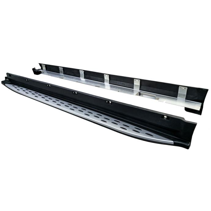 Ove visokokvalitetne aluminijske pragove u originalnom izgledu (kao i original) daju vašem GLE-u sportski, elegantan izgled, a istovremeno pružaju veću udobnost pri ulasku i izlasku. Protuklizna površina pruža siguran grip u svim vremenskim uvjetima, a također štiti donji dio vozila od prljavštine i kamenčića.