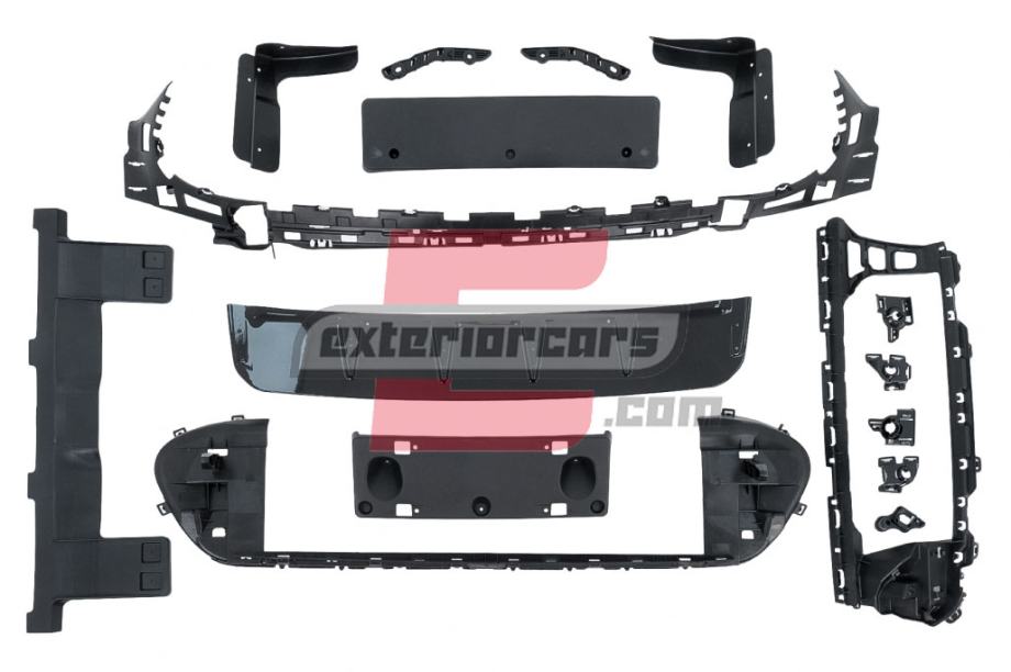 Prednji branik opremljen je prednjom maskom, središnjom donjom mrežicom, bočnim mrežicama, bočnim flapovima, držačima za parking senzore (PDC) i držačem za sustav kamere