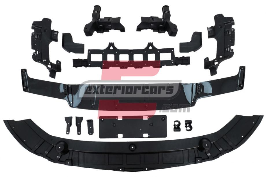 Prednji branik je opremljen prednjom maskom, središnjom donjom mrežicom, bočnim mrežicama, bočnim flapovima, nosačima parking senzora (PDC) i nosačima za sustav kamere