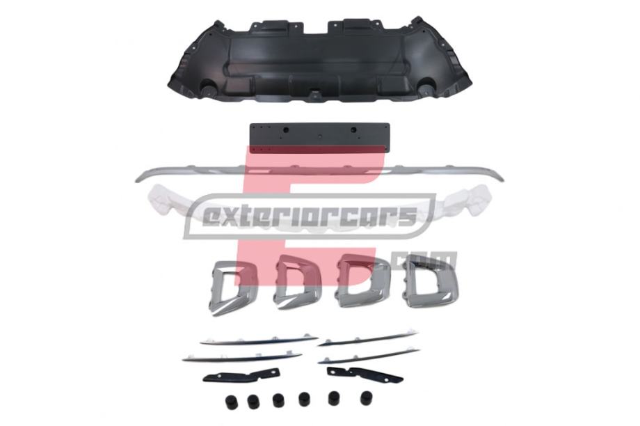 Opremljen je središnjom-donjom mrežicom, bočnim mrežicama, nosačima parking senzora (PDC) i poklopcem kuke za vuču