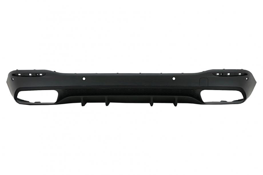 Difuzor zraka na stražnjem braniku izrađen od visokokvalitetne ABS plastike s dvostrukim otvorima za dvostruke vrhove prigušivača u mat crnoj boji.