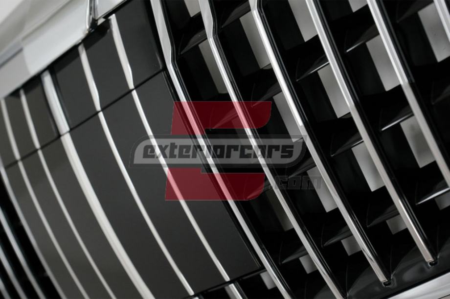 Prednji branik je opremljen sa crnom središnjom-donjom mrežicom, crnim bočnim mrežicama, PDC držačima, poklopcem kuke i brušenim aluminijskim nastavkom branika