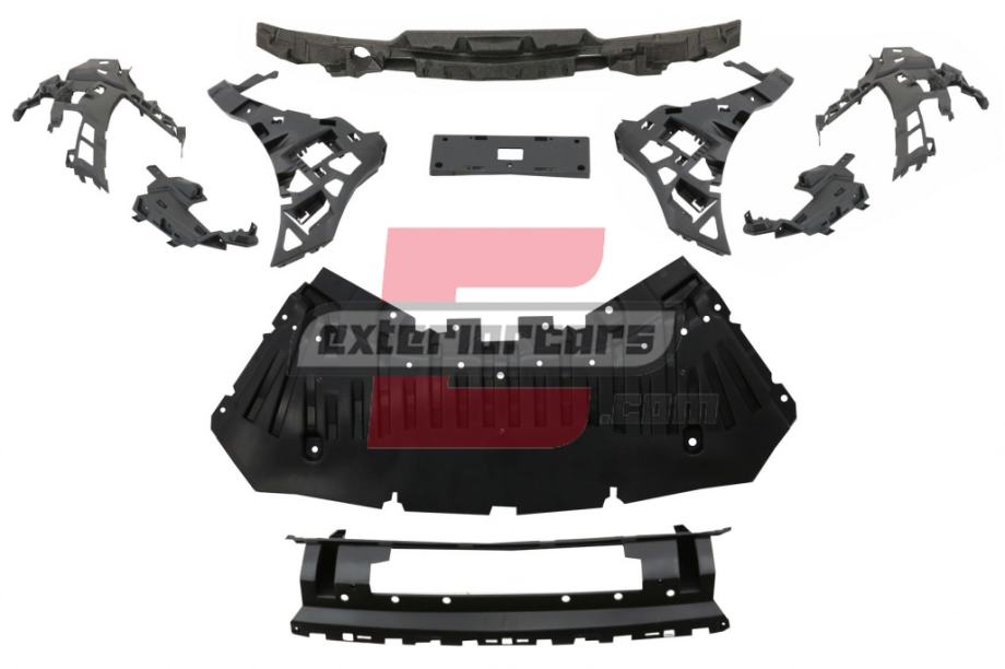 Prednji branik je opremljen s crnom središnjom-donjom mrežicom, crnim bočnim mrežicama, kromiranim splitterima, držačima PDC, poklopcem za kuku i nastavkom branika od brušenog aluminija