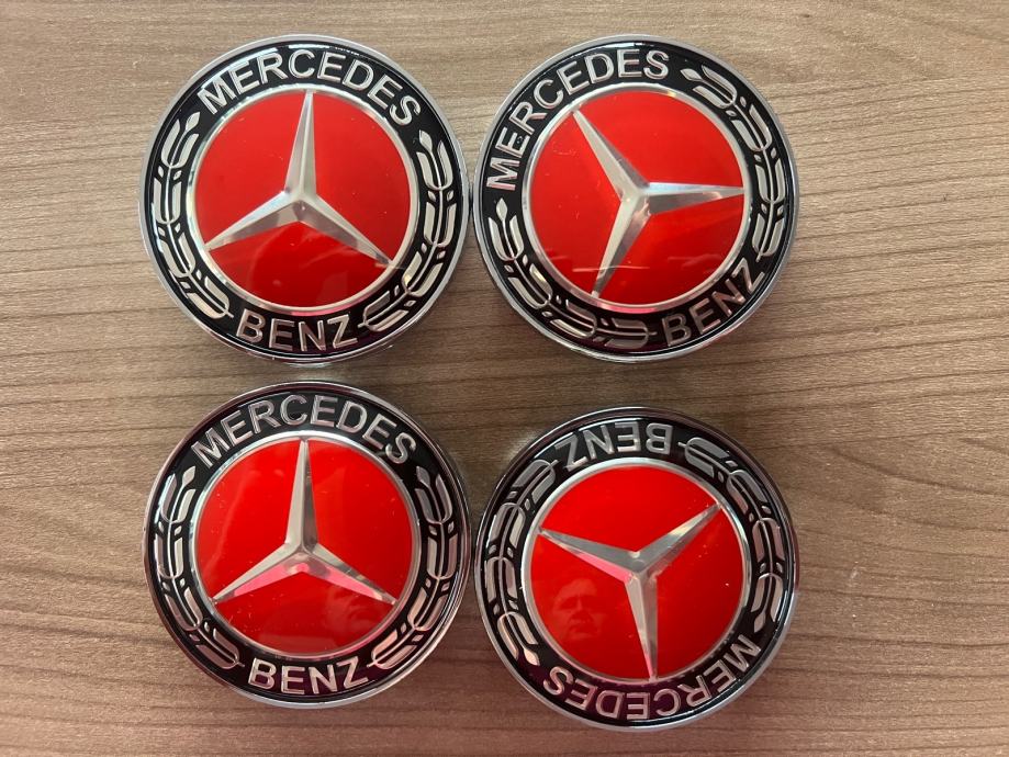 Mercedes poklopci za ALU crveni felge za provrt 65-66,6mm, 4 kom, novo