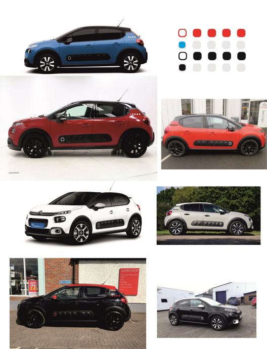 Cijena od 23 eura za CITROEN RACING, 35 eura za bočne, 60 eura za bočne crte, za haubu od 25 eura na više