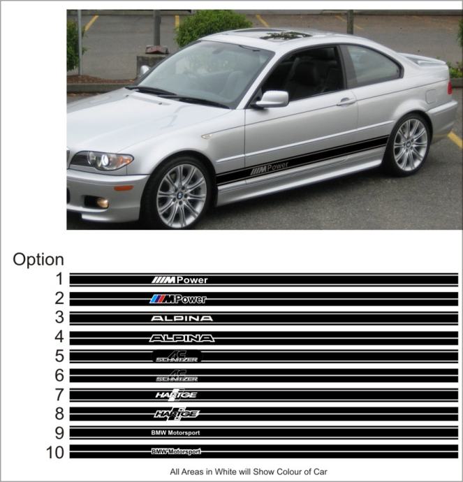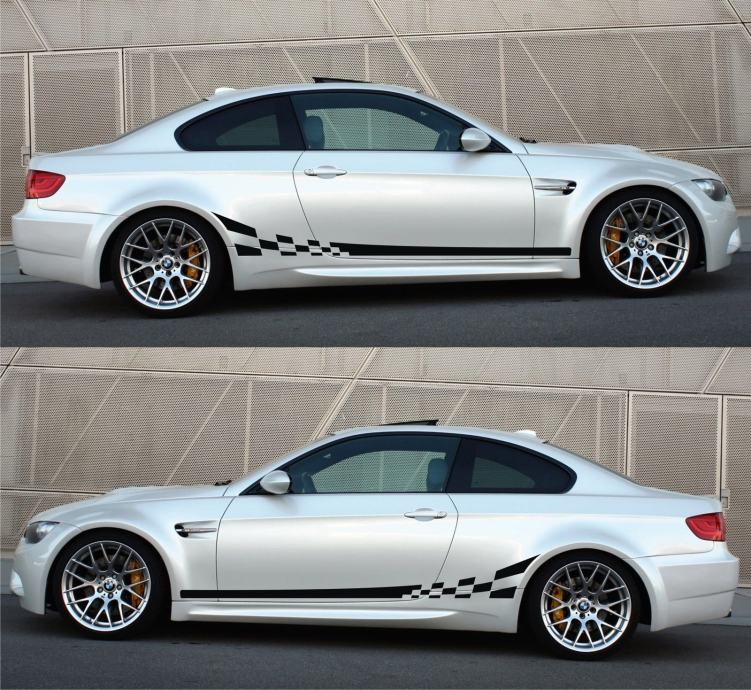 na prednje staklo - vizir 40 eura, crte po cijeloj dužini auta 65 do 100 eura